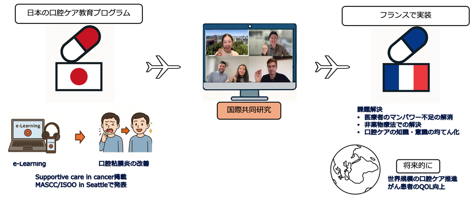 - 日本で開発された「薬剤師主導の口腔ケア教育プログラム」の成果を基盤に、フランスで実装することで課題解決につながる可能性